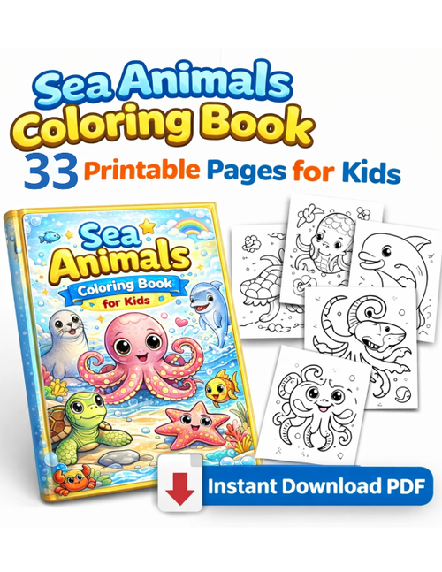 Let your kids explore the ocean with this fun Sea Animals Coloring Book!